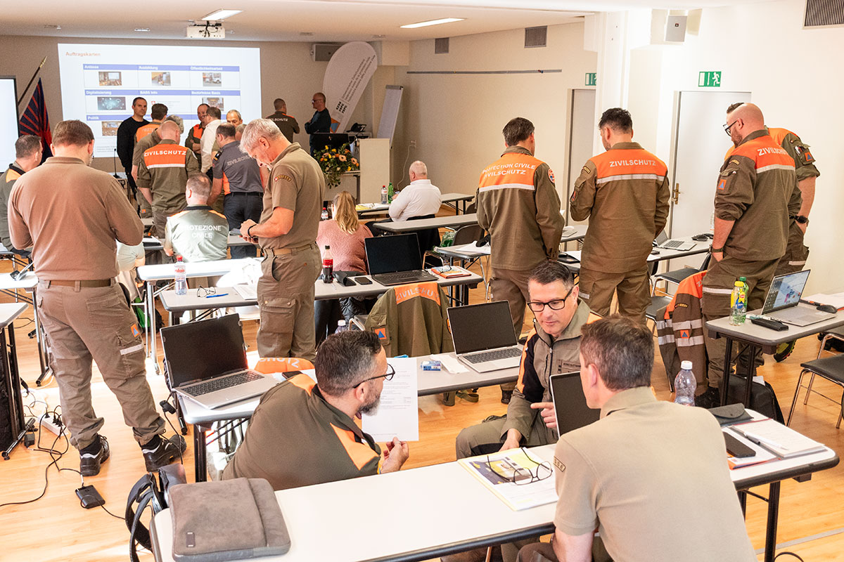 SZSV-Präsidentin Isabelle Chappuis begrüsste die Kommandanten per Videocall aus dem Bundeshaus, wo die Sicherheitspolitische Kommission des Nationalrats tagte. Danach stellte Gastgeber und Kommandant Christian Albeverio seine Protezione Civile Regione Lugano Città vor, eine Organisation mit fünf Einsatzkompanien und 876 Milizangehörigen, verantwortlich für 15 Gemeinden respektive 97'000 Einwohnende.