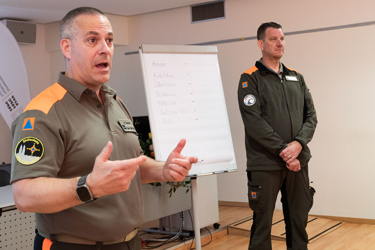 Die Thematik «Bevölkerungsschutz im bewaffneten Konflikt» treibe das BABS sehr um, sagte Jordi in Lugano. Vor zwei Jahren wurde das Projekt mit verschiedenen Handlungsfeldern lanciert, bis Ende 2027, so seine Hoffnung, sollte die Gesamtkonzeption vom Bundesrat verabschiedet und somit klar sein: Was muss der Zivilschutz können und welche Mittel werden benötigt, damit man im Falle eines bewaffneten Konflikts vorbereitet ist. Ein wichtiges Stichwort in diesem Zusammenhang sind selbstredend die Schutzbauten und deren Werterhalt. Seine Bitte an die Kommandanten: «Schaut, dass diese sauber gewartet und kontrolliert sind.»