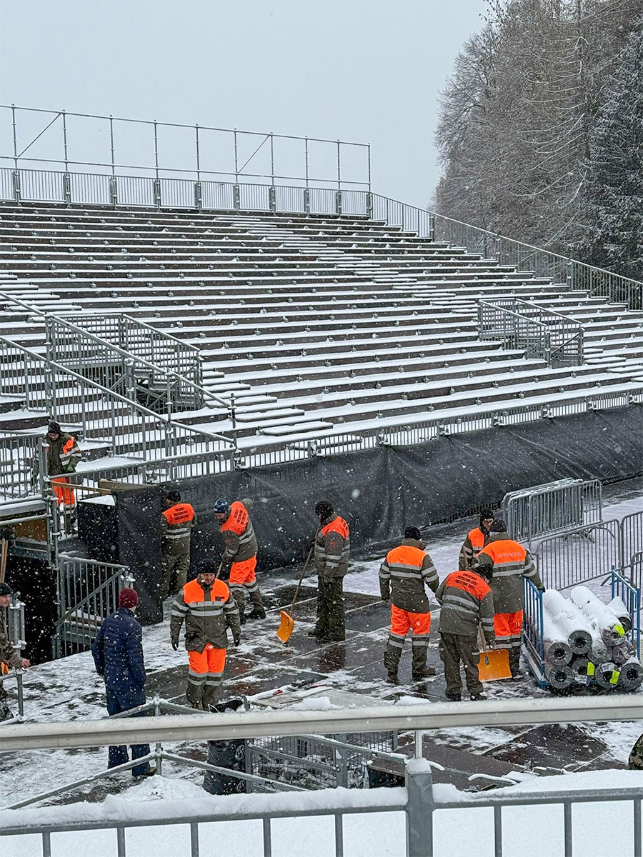 Im Verlaufe dieser Woche war der Zivilschutz damit beschäftigt, sämtliche Bauten für die Weltcuprennen zu errichten, den Aufbau und die Präparation der Rennstrecke sowie logistische Aufgaben wie Transporte sicherzustellen. Die Versorgung aller Einsatzkräfte gehört ebenfalls zum Aufgabenbereich des Zivilschutzes. Gesamthaft werden 3'300 Manntage geleistet, die durch das Bundesamt für Bevölkerungsschutz bewilligt wurden. Nach den Rennen am kommenden Wochenende erfolgt nahtlos der Abbau, welcher bis zum 28. Januar dauert.