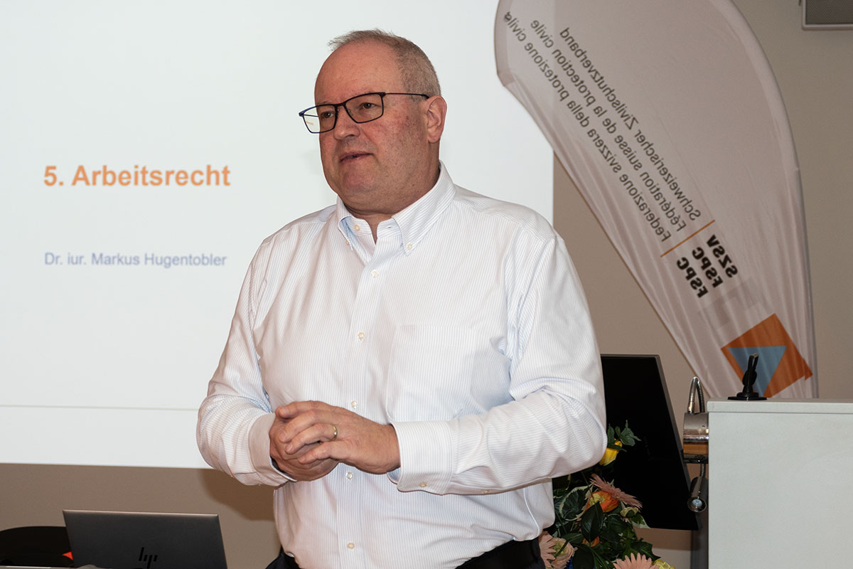 Als Fazit machte er fest: Der Zivilschutz-Dienst bewirkt zwar eine zwingende Freistellungspflicht des Arbeitgebers, jedoch keinen Anspruch auf arbeitsrechtliche Kompensation. «Er suspendiert die Arbeitspflicht, aber nicht die Fürsorgepflicht», so Hugentobler. Haftungsrechtlich entscheidend sei nicht der Einsatz selbst, sondern die betriebliche Reaktion darauf. Oder wie er sich ausdrückt: «Der Zivilschutz funktioniert nur im Zusammenspiel zwischen Staat, Arbeitgebern und Schutzdienstleistenden. Das Recht gibt den Rahmen vor, die Praxis verlangt Kooperation, Vernunft und Prävention.»
